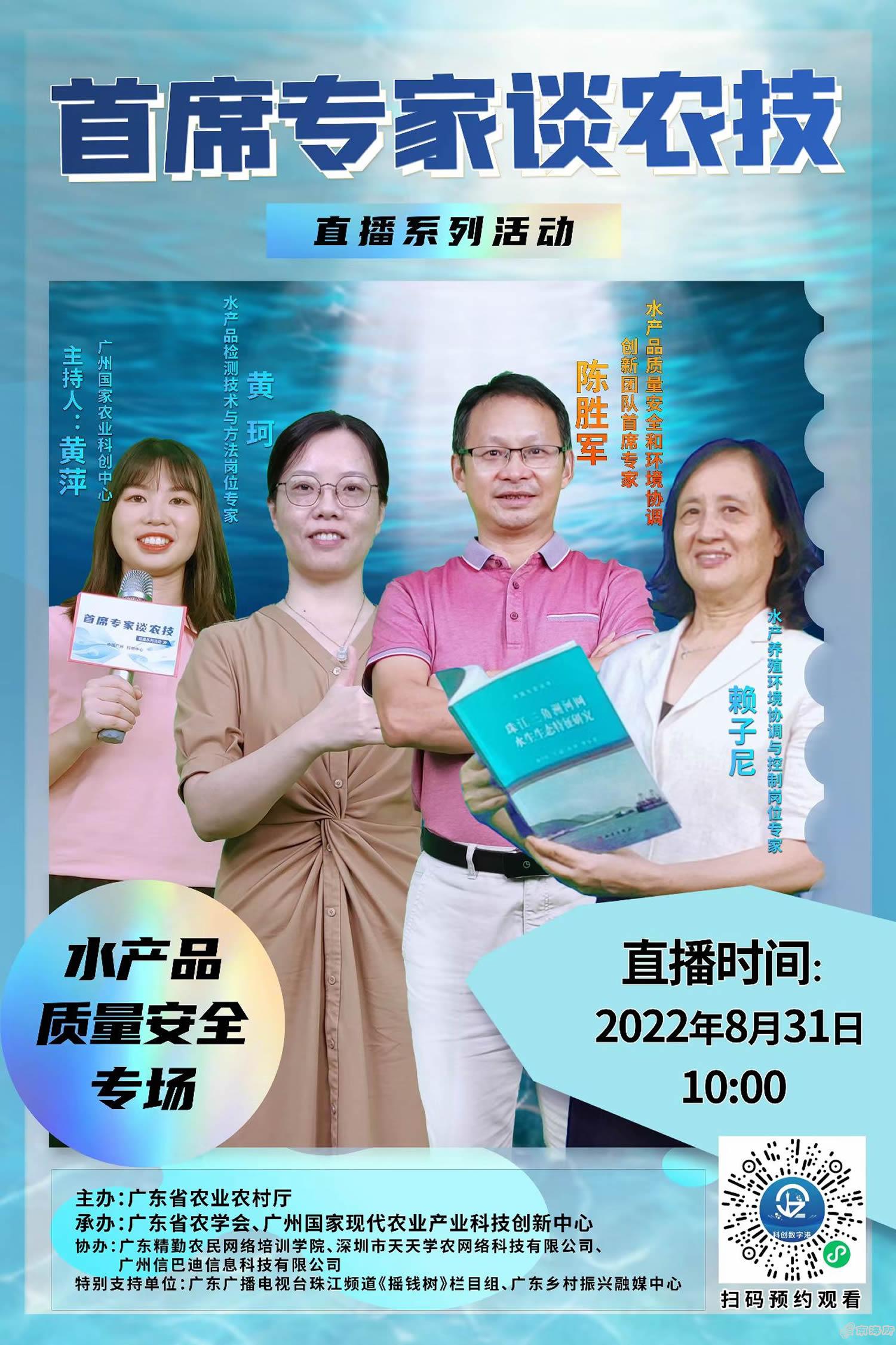 2022??1日,《首席专家谈农技》直播第十三期水产品质量安全专场在广州国家现代农业产业科技创新中心开播。广东省现代农业产业技术体系水产品质量安全和环境协调共性关键技术研发创新团队首席专家、中国水产科学研究院南海水产研究所陈胜军研究员,该创新团队水产品质量安全检测技术岗位专家、中国水产科学研究院南海水产研究所黄珂副研究员和该创新团队水产养殖环境协调与控制岗位专家赖子尼研究员做客直播间。此次直播还在科创数字港、精农网院、广东乡村振兴融媒体中心等多个平台同步直播,吸引了?.6万人次观看。广东省农业农村厅官网、《南方农村报》、南?客户端等平台对此次专场直播进行了报道?/p>