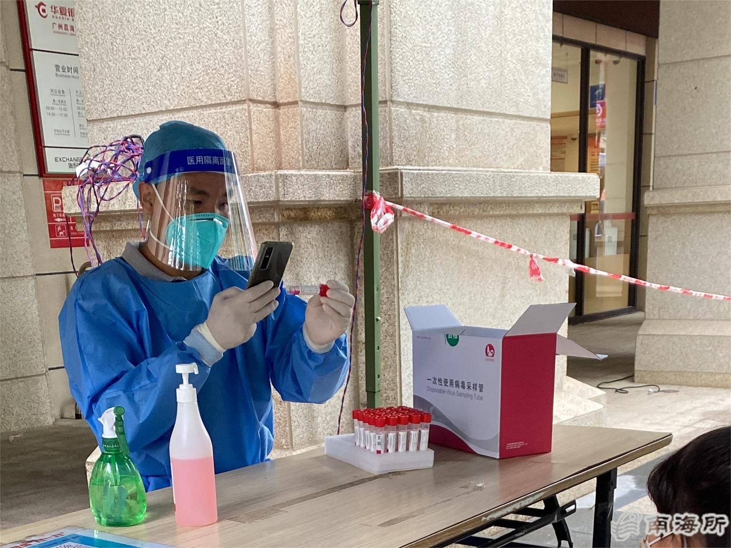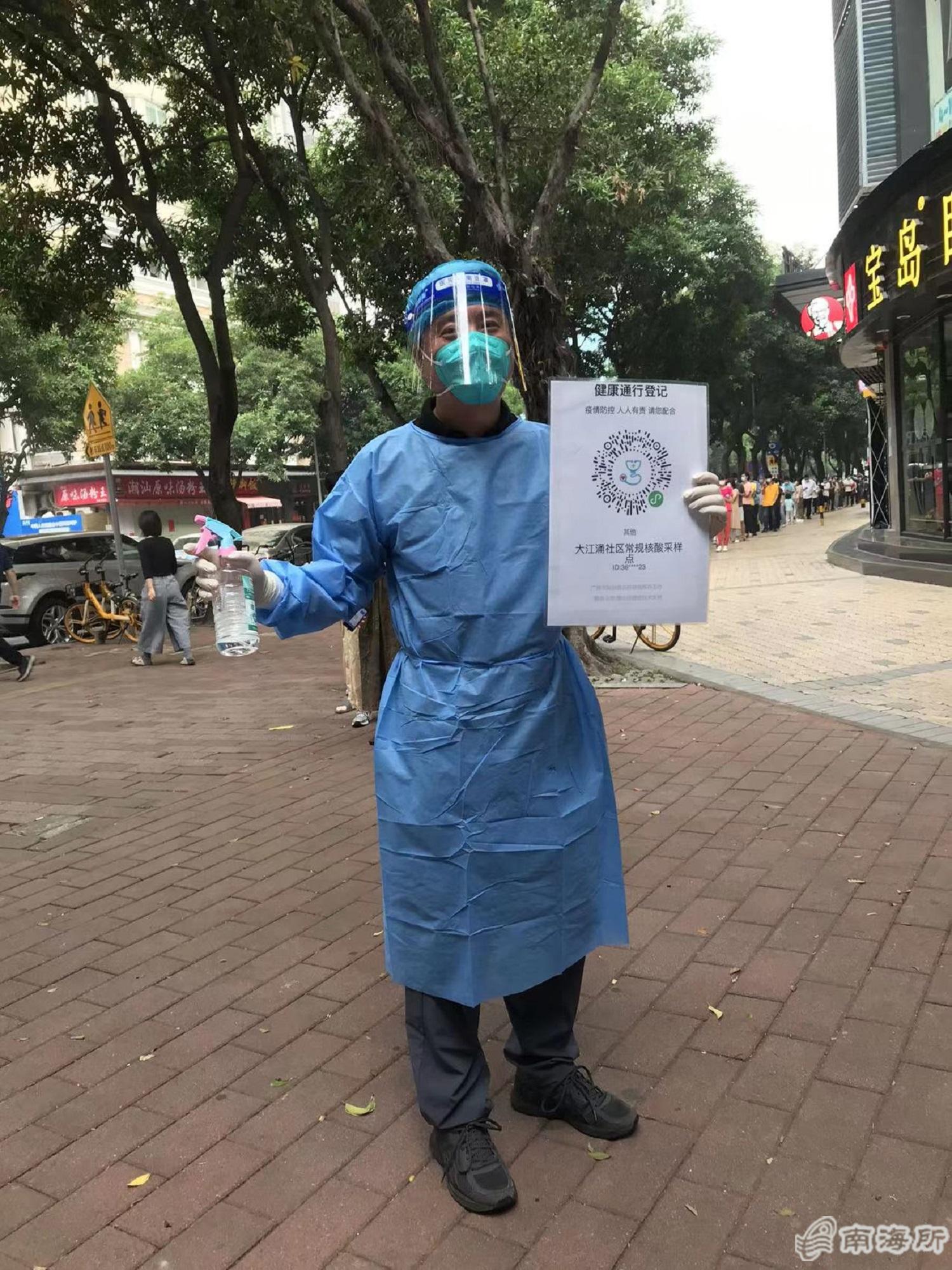 ——在荔湾区,陈余海同志主动到白鹤洞街道社区做核酸检测志愿者,协助维持秩序和核酸扫码…?/p>