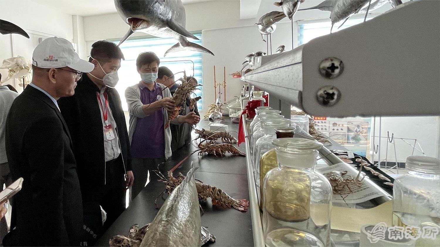 现场教学气氛热烈,参训学员对热带中心实验车间里养殖的各类海洋生物以及标本室的海洋标本等产生了浓厚的兴趣,并与热带中心科研人员就相关科研项目和研究进展情况进行了深入探讨和交流?/p>