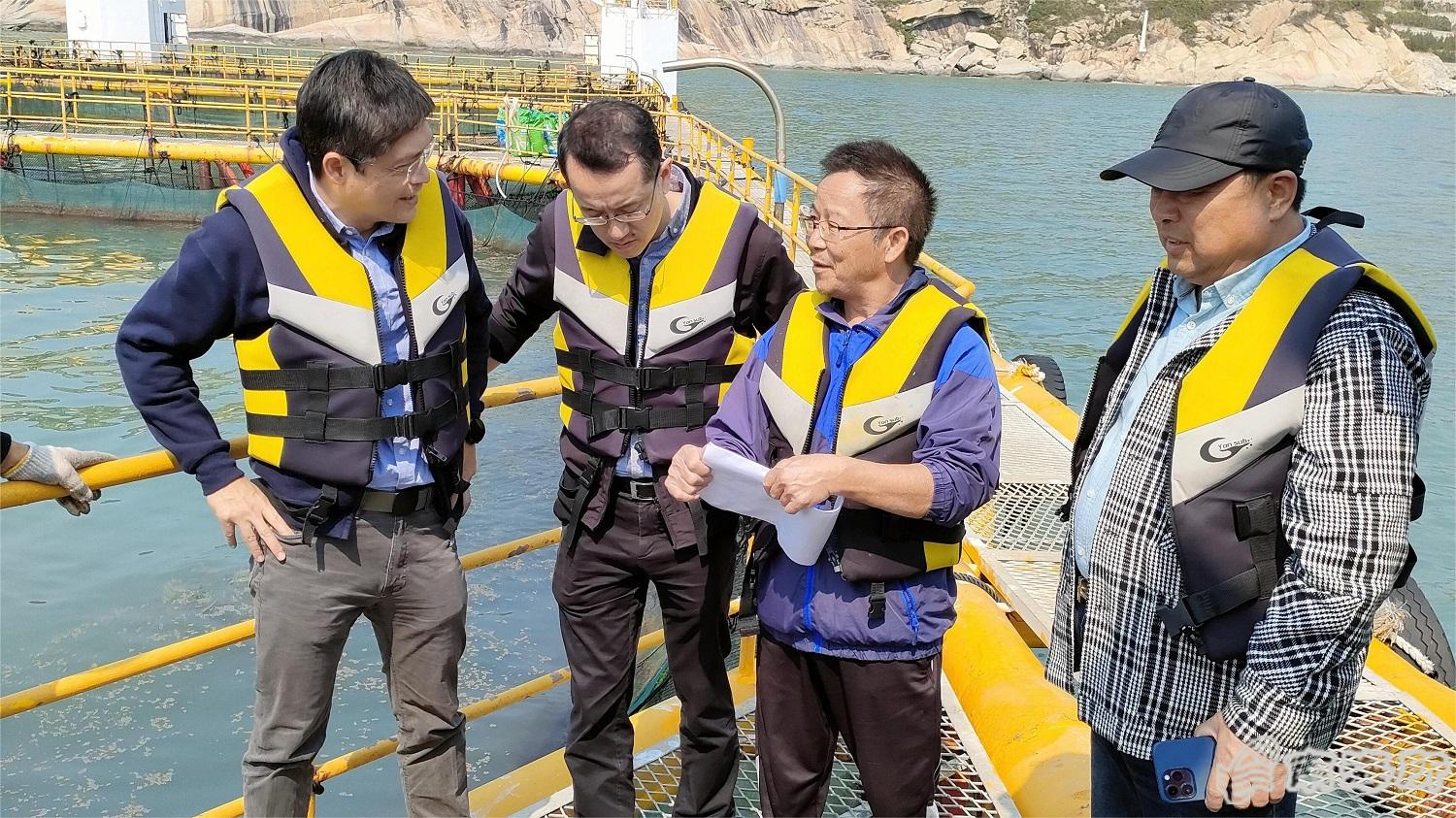 2023??3?4日,香港渔农自然护理署助理署长黎存志、高级渔业主任周永权等一?人,就加快推进香港水域深海网箱养殖发展,到中国水产科学研究院南海水产研究所开展工作交流调研。南海所院级离岸网箱养殖装备与工程创新团队郭根喜研究员、黄小华研究员等接待了黎存志助理署长一行?/p>