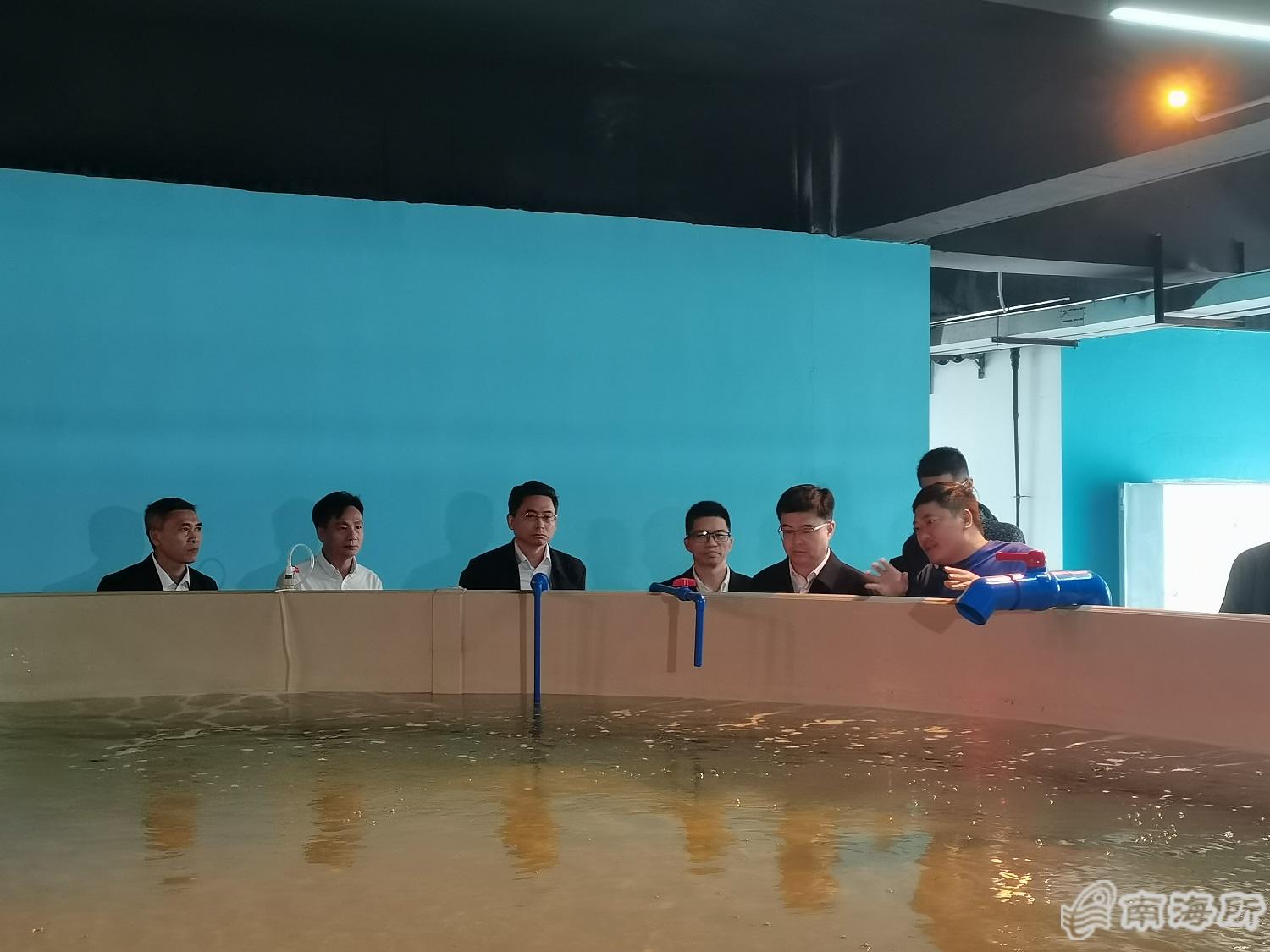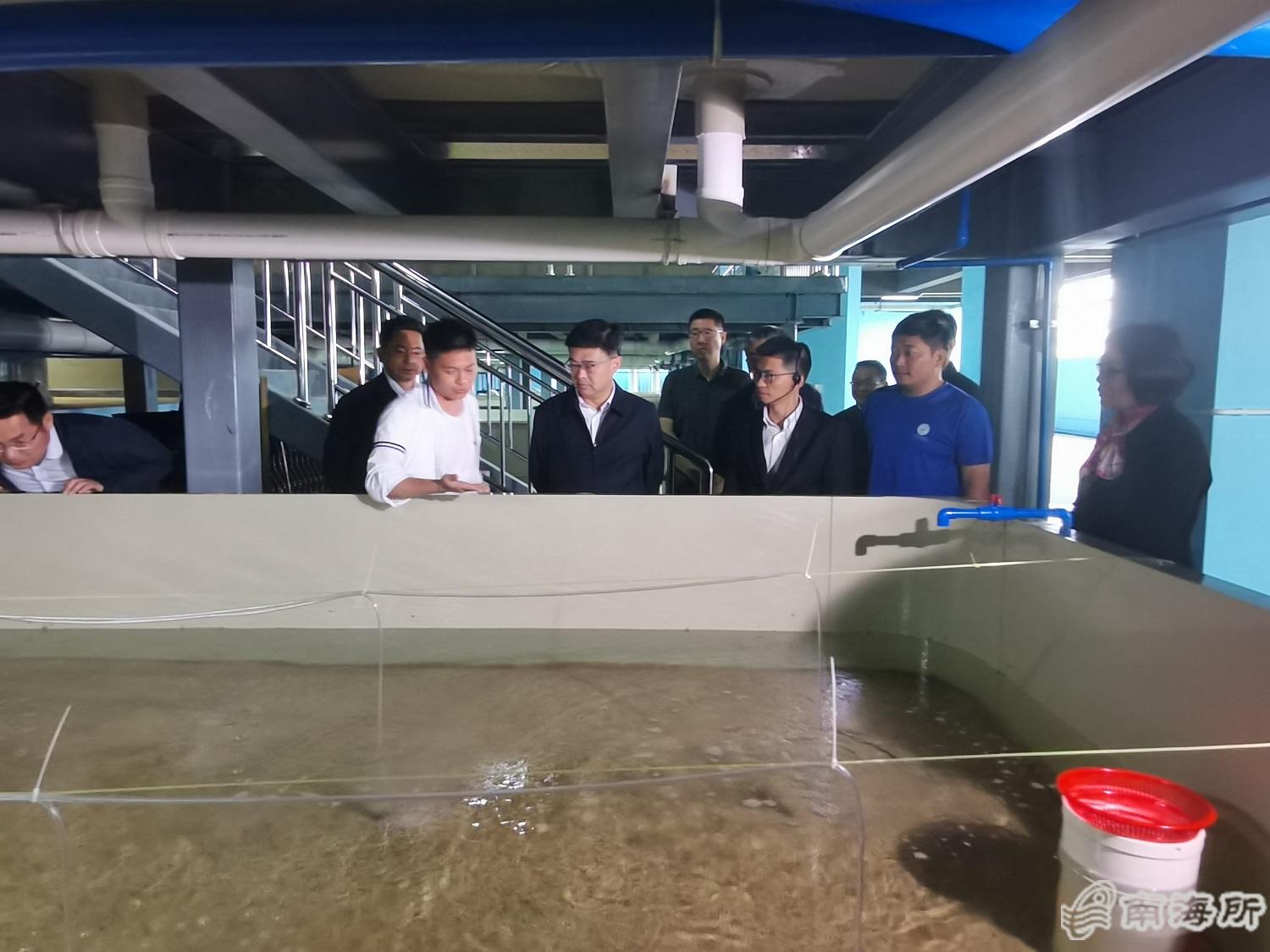 陈怀宇副省长一行来到产业园内的海南(文昌)渔业创新研究中心,先后听取了南海所承担的“东星斑循环水养殖及无损病毒筛查技术研究与示范”项目和“东风螺循环水生态养殖关键技术研究与示范”项目的基本情况和目前研究进展的汇报,了解了南海所技术支撑海南省渔业科技研发与技术推广等相关情况,并从积极践行“绿水青山就是金山银山”理念,充分发挥科研院所特色和优势,双方共同推动海南高质量发展等方面提出了希望和要求?/p>
