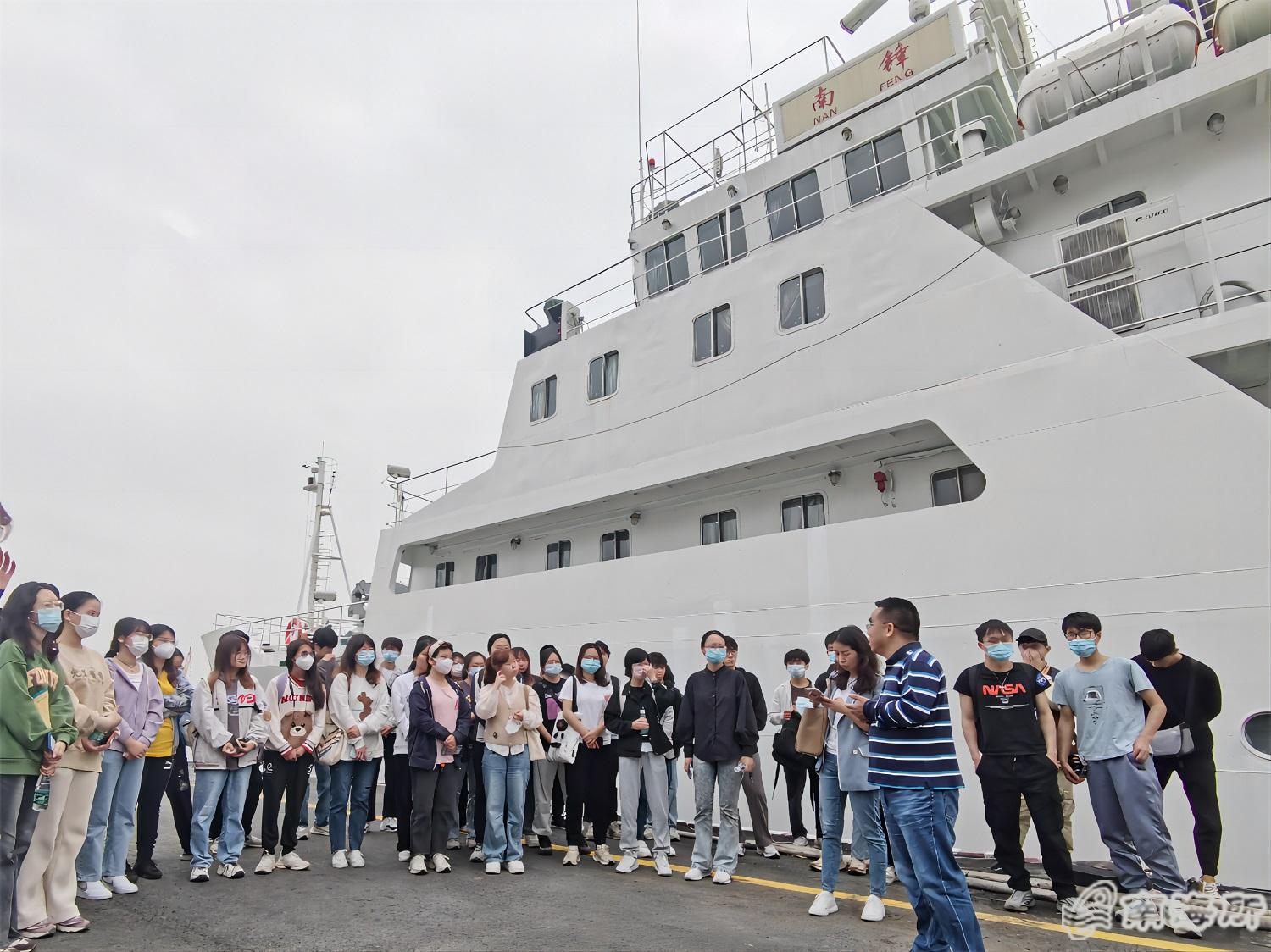 参观现场秩序井然,师生们先后登上“南锋”号与“中渔科301”号,依次参观了两船的驾驶台、集控室、实验室等场所,全面了解了两船的船舶功能构造、甲板机械、仪器设备、海上作业方式方法、完成科学调查任务等情况,并就有关海洋知识、渔业资环调查历史等感兴趣的话题与职务船员进行了热烈交流,进一步拓宽了同学们的专业视野,激发了学习兴趣和耕海探洋的热情,增强了维护国家海洋权益的意识?/p>