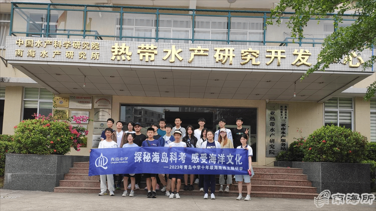 2023??9日上午,山东省青岛中学研学团20余名高一学生到中国水产科学研究院南海水产研究所热带水产研究开发中心陵水基地开展研学活动。热带中心邓正华等科研人员接待研学团一行?/p>