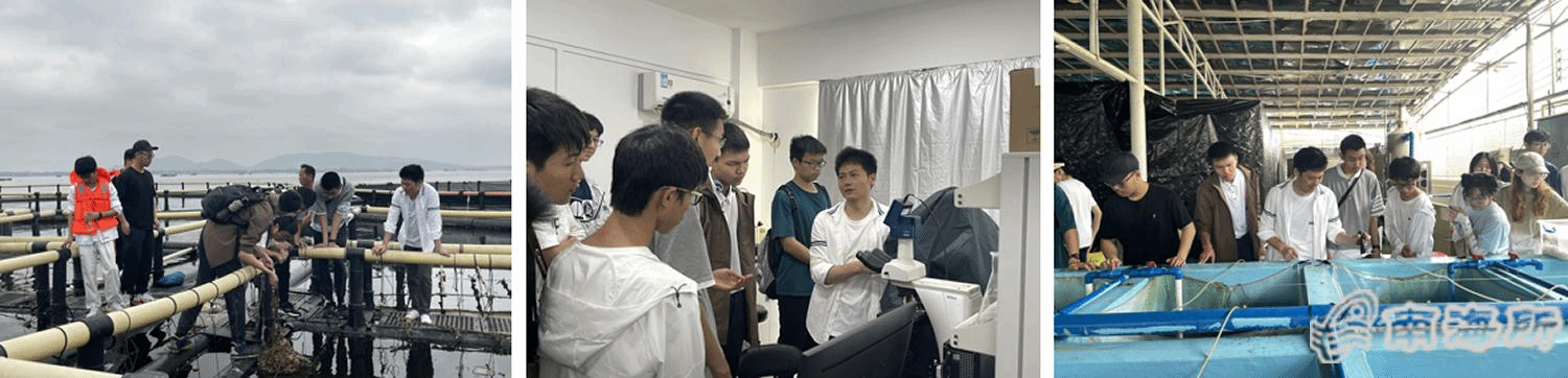 热带中心科研人员带领研学团现场了解了海上养殖平台设施设备以及网箱内金鲳鱼亲鱼和鱼苗养殖试验情况,吊笼模式养殖的珍珠贝、牡蛎及自然海域的各种海洋生物等,参观了实验室、海洋生物标本室和养殖车间以及海洋生物浸制和干制标本,了解了各种仪器设备的功能、科研用途和各种标本制作特点等,加深了对水产行业和科研的认识,激发了浓厚的学习兴趣?/p>