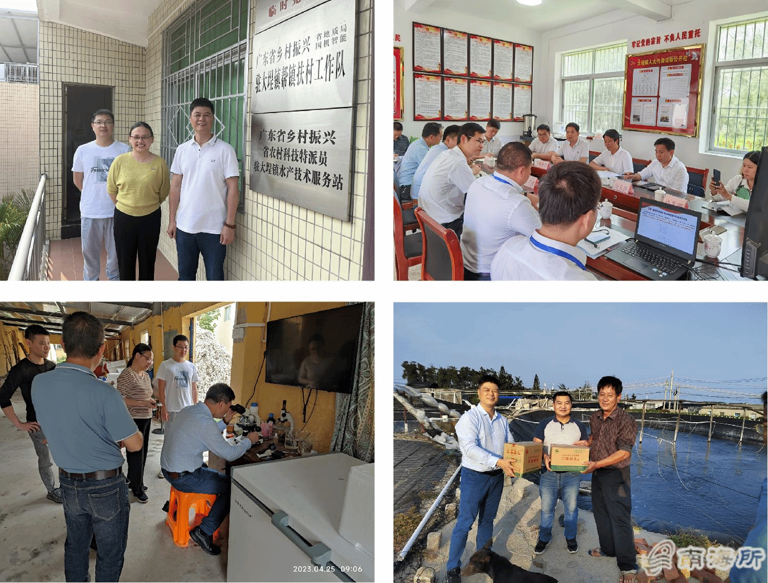 近日,中国水产科学研究院南海水产研究所广东省农村科技特派员杨铿副研究员带领团队成员胡晓娟博士、蒋魁工程师等一?人,来到定点帮扶镇——广东省潮州市饶平县大埕镇,与大埕镇党委书记汤梓鹏、驻镇帮镇扶村工作队队长王林衡等进行了座谈,充分交流和总结了杨铿团队开展精准科技服务、助推当地水产养殖业发展的工作情况和成果亮点?/p>