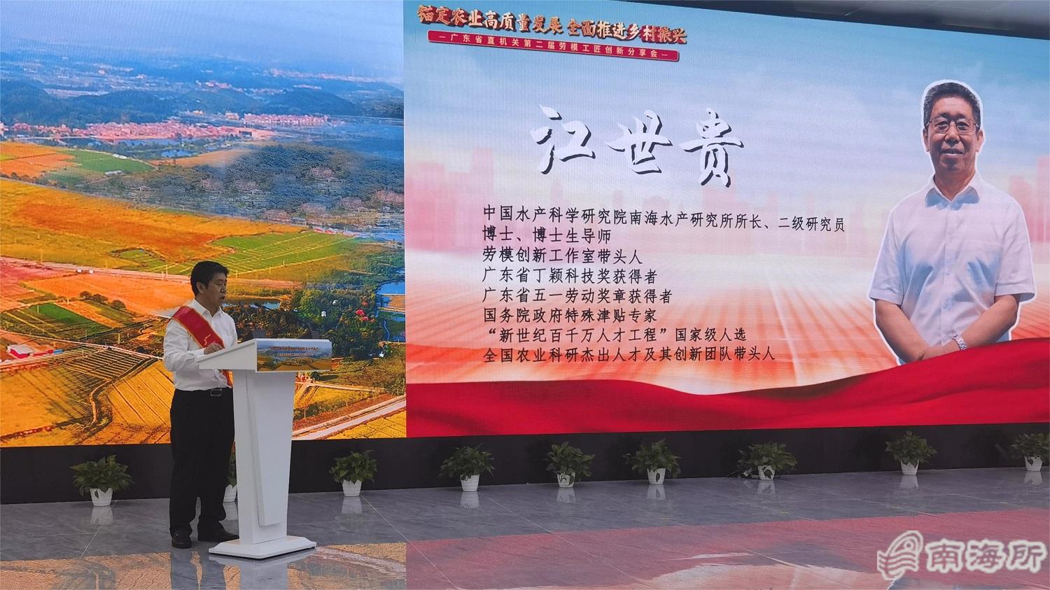 2023??7日上午,省直机关工会联合省农业农村厅、省农科院等单位共同举办了以“锚定农业高质量发展、全面推进乡村振兴”为主题的省直机关第二届劳模工匠创新分享会。中国水产科学研究院南海水产研究所江世贵所长作为省直机?名劳模创新工作室带头人和农业系统行业的劳模代表之一应邀参加了此次活动并作分享发言?/p>