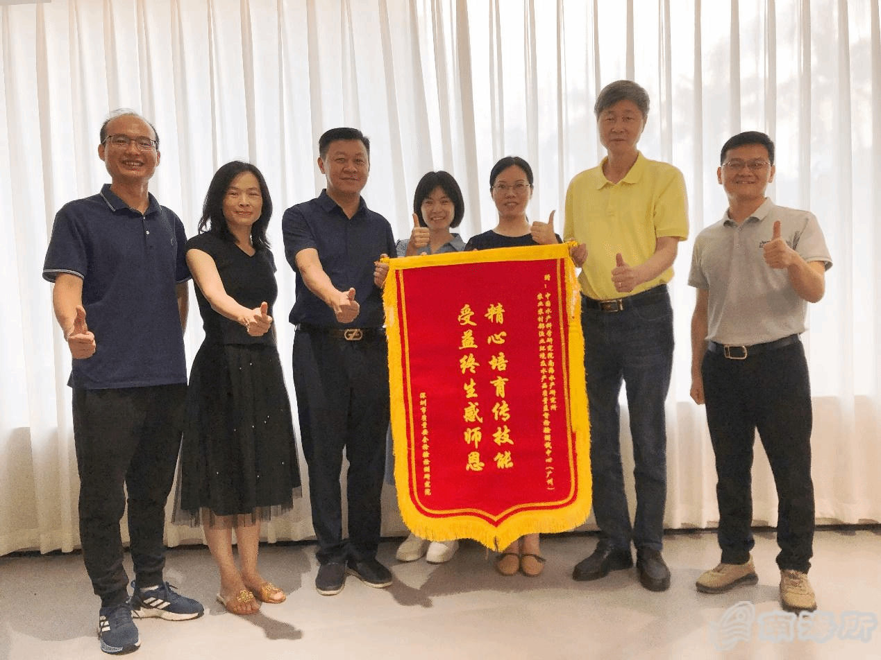 2023??日,深圳市质量安全检验检测研究院院长陈泽果、副院长罗燕、聂婵工程师等一行,专程到依托中国水产科学研究院南海水产研究所建设的农业农村部渔业环境及水产品质量监督检验测试中心(广州)(下称“部质检中心”)赠予“精心培育传技能、受益终身感师恩”锦旗,感谢部质检中心技术骨干在集训第五届全国农产品质量安全检测技能竞赛水产选手工作中的辛勤付出和无私奉献?/p>