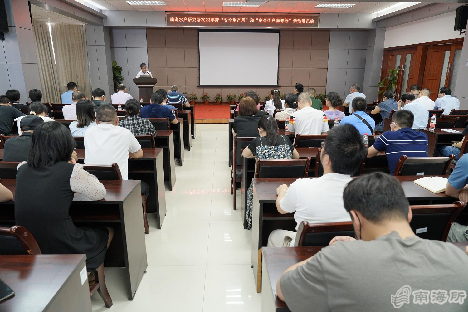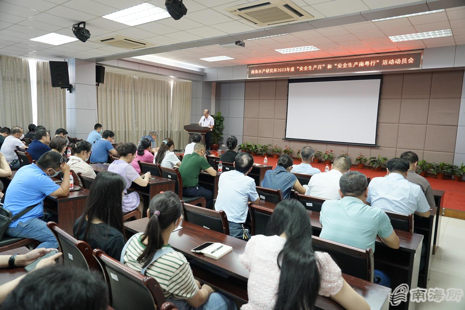 2023?月是?2个全国“安全生产月”,主题为“人人讲安全、个个会应急”??日,中国水产科学研究院南海水产研究所举办“安全生产月”和“安全生产南粤行”专题启动会和消防演练活动。南海所所长江世贵主持会议,在家所领导和所干部职工、联培研究生以及相关物业代表?30余人参加会议和演练活动?/p>