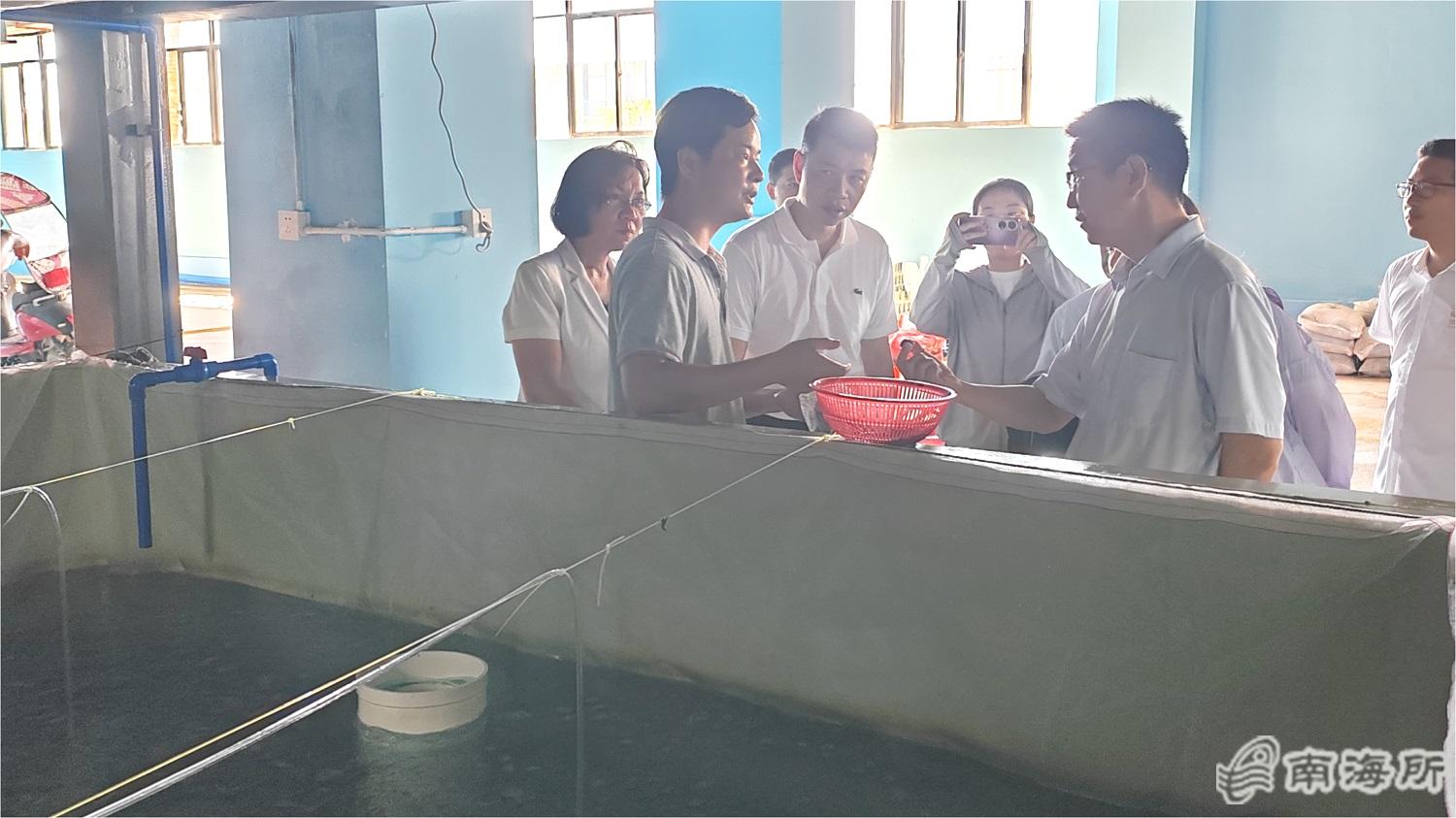 江开勇副局长一行现场考察了南海所承担的“东星斑循环水养殖及无损病毒筛查技术研究与示范”和“东风螺循环水生态养殖关键技术研究与示范”项目研究进展情况,对两个研究项目取得的阶段性科研成果给予充分肯定,并希望项目团队继续紧紧围绕渔业产业发展需求开展科技攻关,加快推进科研成果向支撑服务转化,为海南渔业高质量发展贡献更大科技力量?/p>