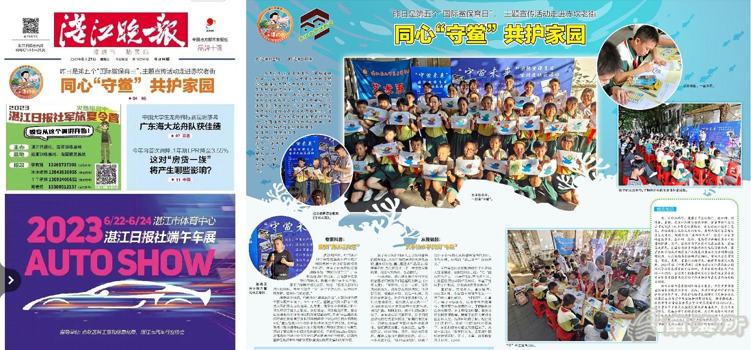 本届国际鲎保育日广东专场科普宣传活动得到各方媒体广泛报道,包括《人民日报》、新华网、光明网、中国网、南方plus、壹深圳海洋频道、湛江广播电视台新闻联播节目、《湛江晚报》、湛江云媒、今日头条、广东海洋协会、湛江市第二十一小学等,为增强民众中华鲎保育意识起到了良好的促进作用?/p>