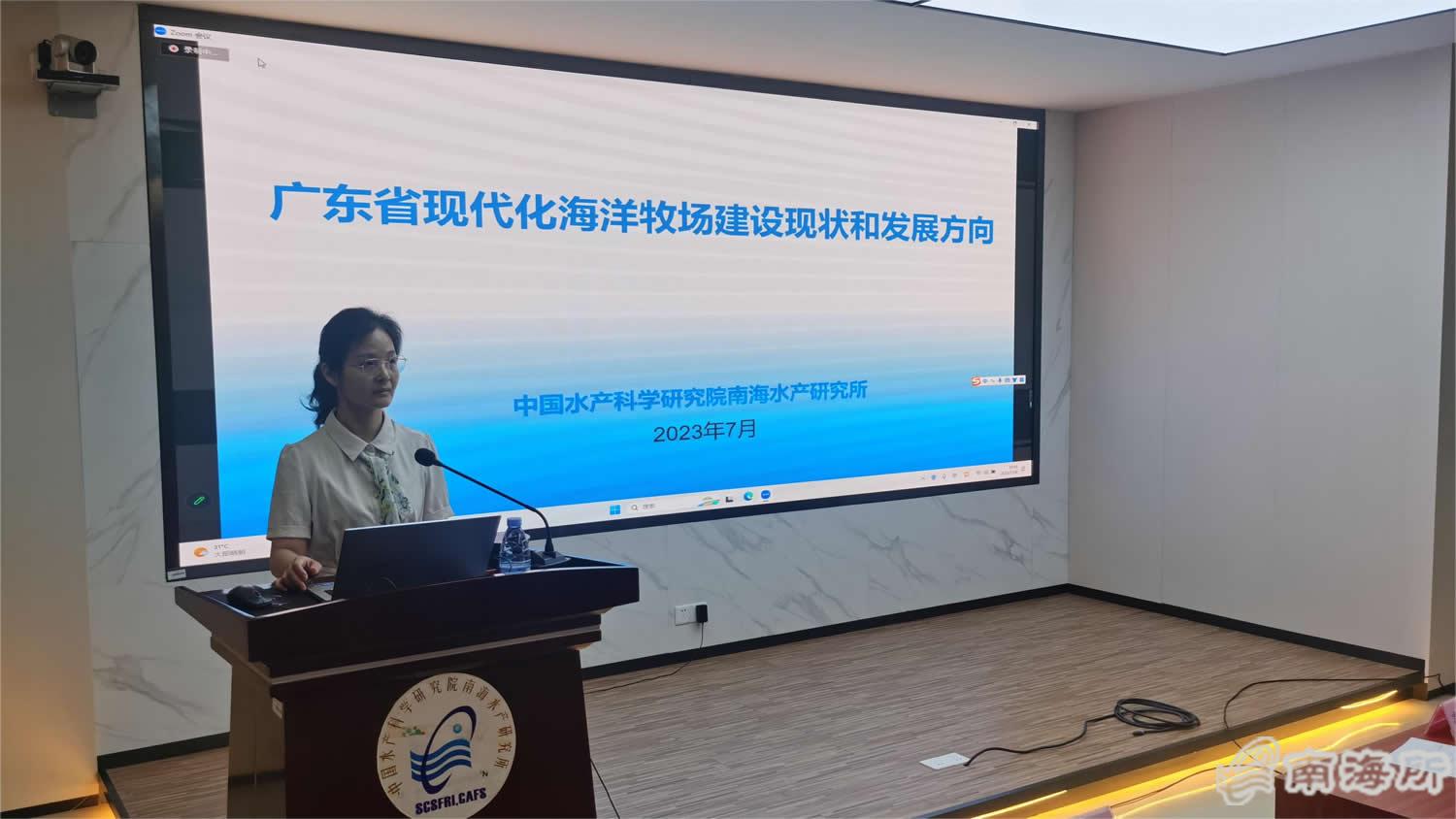 南海所研究员余景作了题为“广东省现代化海洋牧场建设现状和发展方向”的专题讲座。立足现代化海洋牧场产业背景,余景研究员介绍了国内外和广东省的海洋牧场发展现状、深远海养殖的需求和主养品种等内容,分析了挪威三文鱼网箱养殖产业模式,指出了广东省现代化海洋牧场的发展方向?/p>
