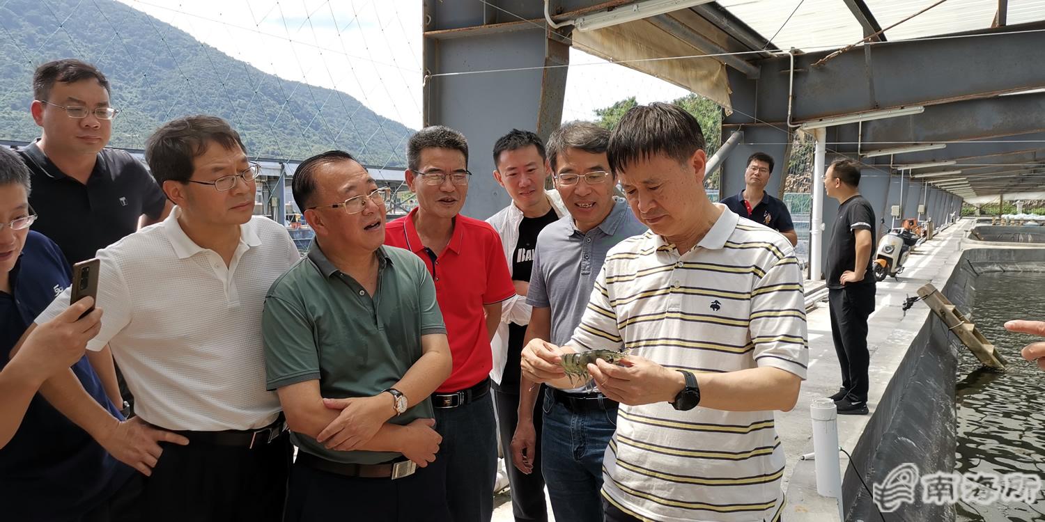 刘新中局长现场考察了各试验车间、高位池和网箱养殖码头,深入了解了斑节对虾育种、石斑鱼工厂化养殖以及小丑鱼、牡蛎等多个物种人工繁育进展情况,对在基地开展的试验研究工作给予充分肯定,特别强调了渔业科技创新在水产养殖领域的重要性,并表示,部局将继续支持、加强水产种业和现代渔业创新技术的研究工作,以科技创新助力提升我国渔业竞争力?/p>