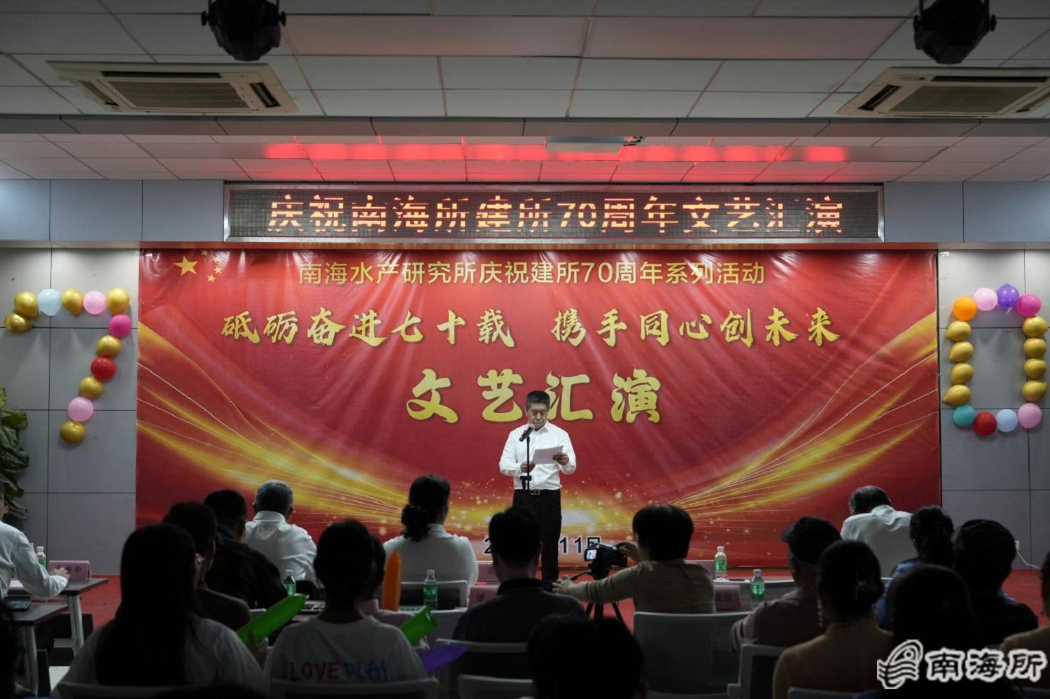 南海所所长江世贵首先致辞,总结回顾?0年的建所历程和具有重大影响的一系列科技成果以及涌现出的一批又一批优秀人物和先进典型,进一步明确了未来发展的目标方向和任务。他指出,建所以来,南海所坚持立足南海、面向全国,始终与祖国共命运、与时代同步伐,担负解决渔业“卡脖子”技术攻关的使命,致力于解决渔业及渔业经济发展的重大科技问题,在科技兴渔、人才培养、交流合作等方面发挥了重要作用。他希望,全所上下要以建所70周年为新的起点,在习近平新时代中国特色社会主义思想指引下,勇担国家赋予的职责使命,锚定发展目标,坚持“四个面向”,大力推进渔业科技创新,为实现“四个一流”南海所而不懈努力,为引领支撑渔业高质量发展、服务乡村振兴、建设农业强国做出新的更大贡献?/p>