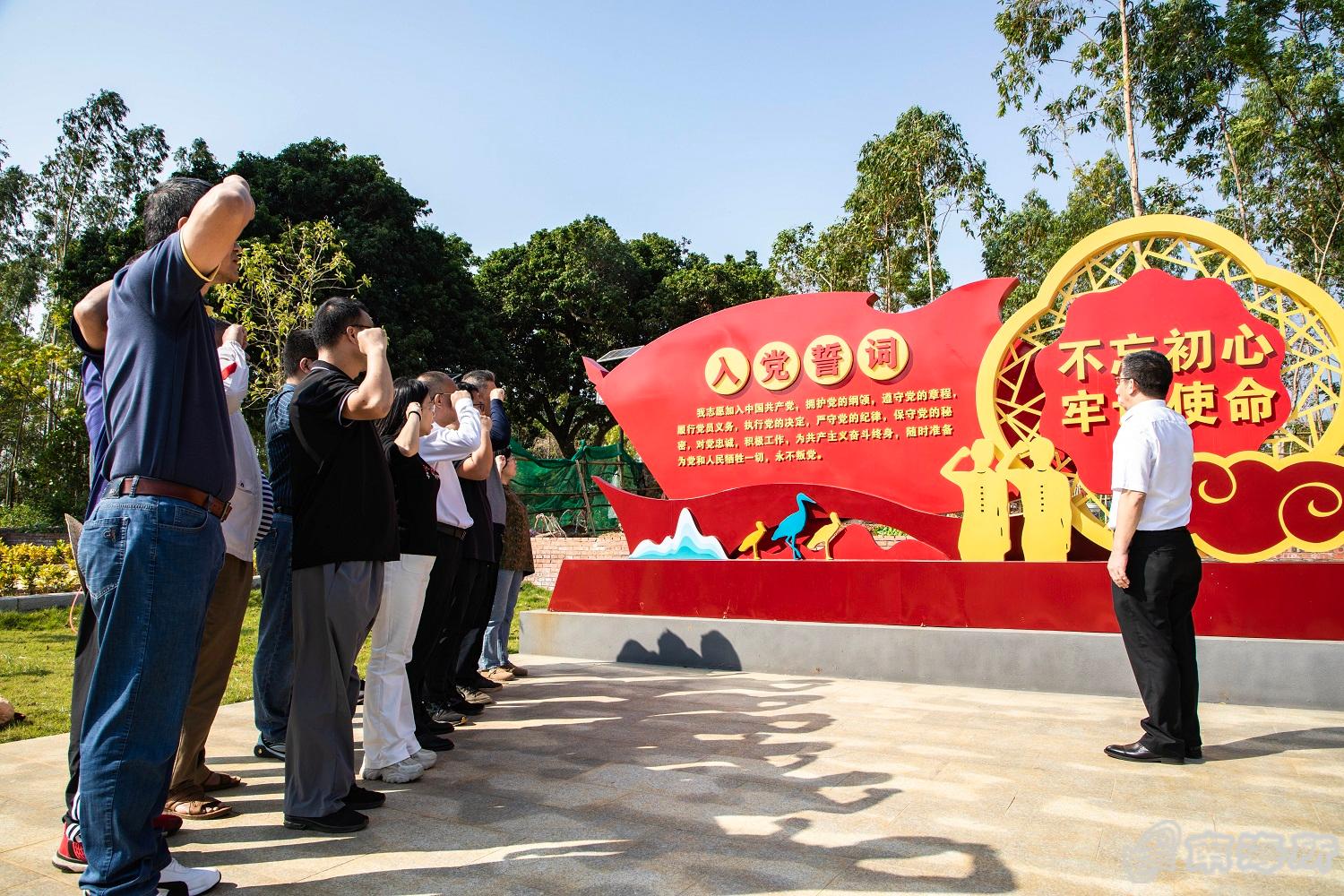 在雷高镇肖家村,江世贵所长听取了所驻村第一书记、基建条件处副处长朱李春关于该村乡村振兴示范创建工作情况的汇报,先后考察了南海所乡村振兴重点帮扶项目“甘薯苗种和玉米轮种示范推广建设项目”、“肖家村南泽公园建设项目”、“雷高镇消费帮扶馆建设项目”等建设情况,并带领支部党员在已建成的肖家村党建文化公园重温入党誓词、学习了解中共党史和雷州党史以及肖家村抗日革命史?/p>