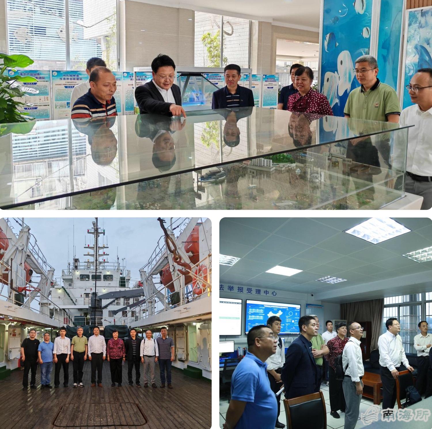 调研期间,袁晓初副局长一行先后参观了国家数字渔业(海洋牧场)创新分中心、“南锋”号调查船、南海渔业中心,详细了解平台设施运行情况,并与相关负责人进行了深入交流?/p>