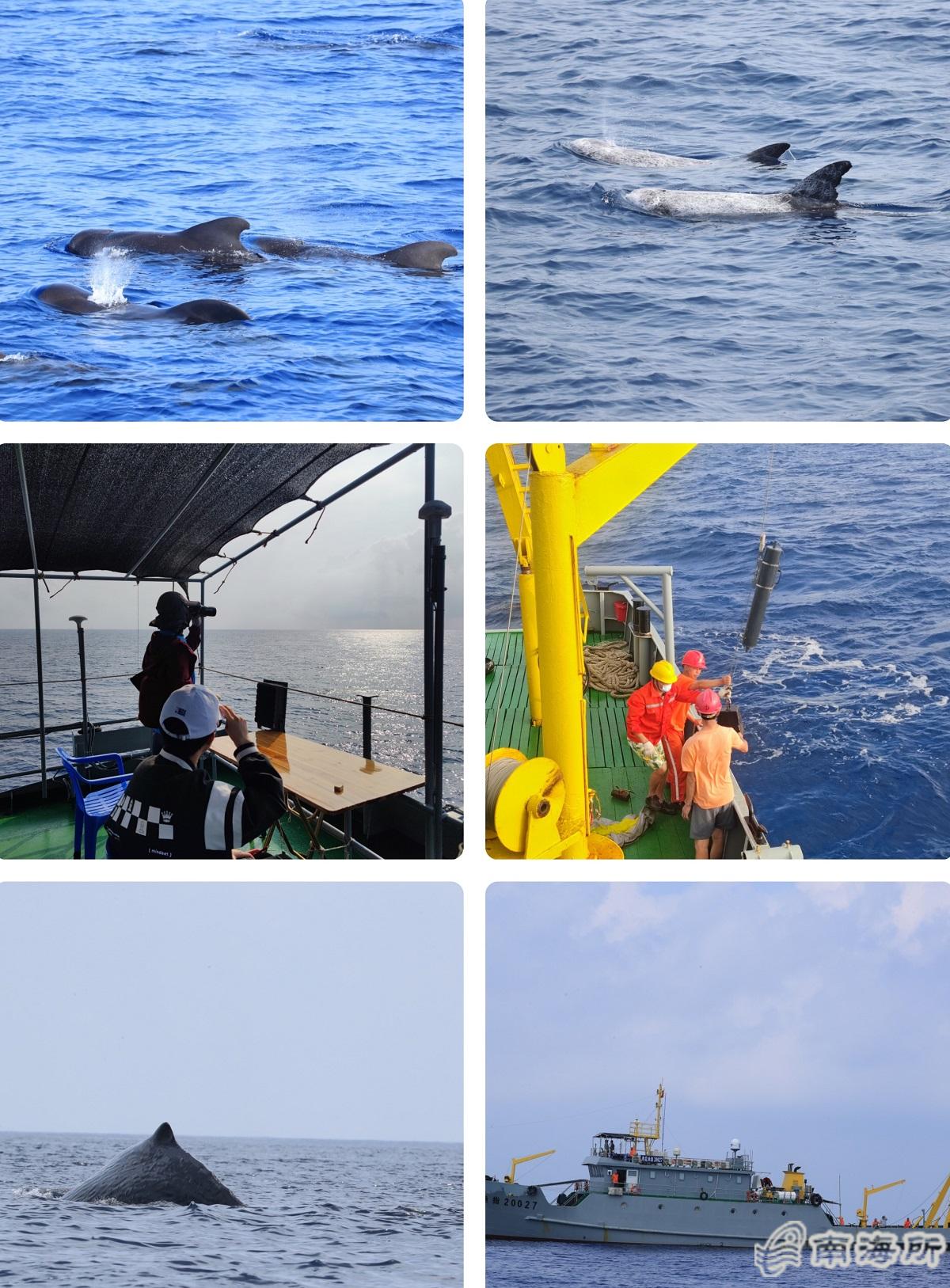 本次考察航次历时13天,航程超过4000公里,由南海所方亮博士担任航次首席。考察团队采用截线目视考察、空中遥测、被动声学和环境DNA技术对调查水域的大型海洋动物进行了多学科的立体监测,考察过程中目击到了数量庞大的大型海洋动物,包括抹香鲸、领航鲸、瑞氏海豚、点斑原海豚和鲨鱼等,同时采集了大量的动物照片和视频、动物声学数据和环境DNA水样。考察过程中还对调查水域大型海洋动物的主要生存威胁因素进行了记录?/p>