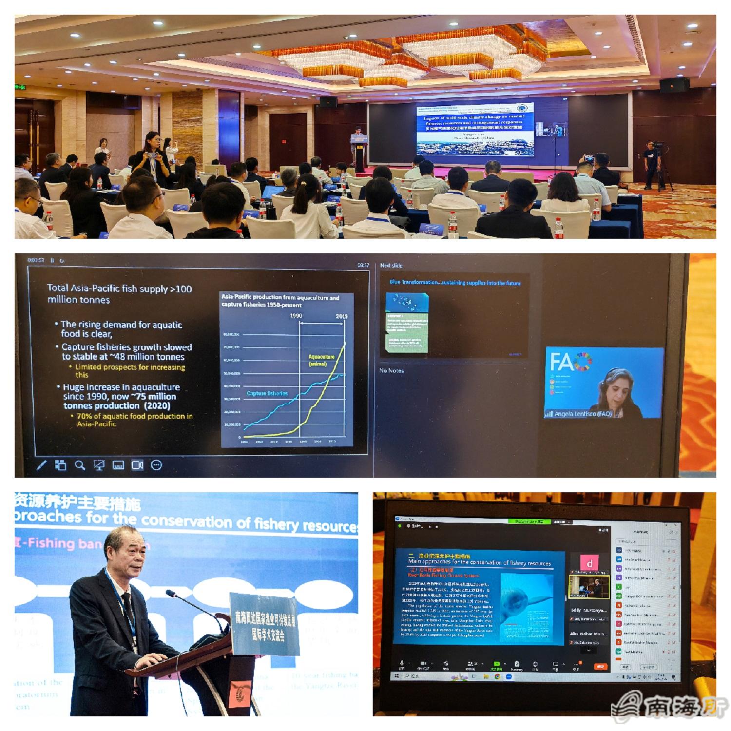 来自FAO亚大办事处以及中国、文莱、柬埔寨、印度尼西亚、菲律宾、越南等国家?4位渔业官员、专家学者,围绕海洋渔业资源管理与养护、捕捞渔业与水产养殖的蓝色转型、气候变化对海洋鱼类资源的影响、渔业资源增殖放流评估、海草床与海洋鱼类保护、珊瑚礁生态修复、海洋牧场碳汇、海藻资源与产业化开发、海洋生物资源加工利用、陆基海水养殖新技术应用等主题,作了主旨和专题报告,共享创新成果,共促学术交流,共谋渔业可持续发展。其中,南海所副所长吴洽儿研究员、海洋牧场室唐振朝副研究员分别做了题为“中国海洋渔业资源养护主要举措与合作展望”的主旨报告和“现代化海洋牧场碳汇机制研究—以贝类养殖区为例”的专题报告?/p>