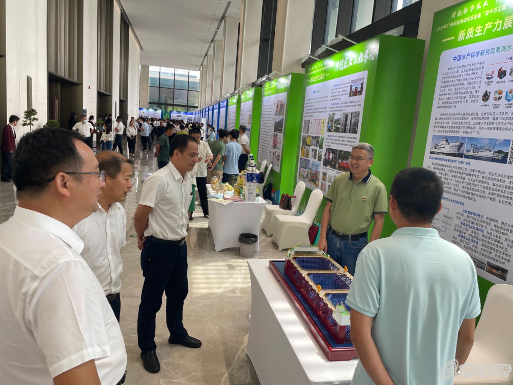 2024??9日,2024年广州市都市现代农业暨“百千万工程”典型村招商引资引智活动在广州白云国际会堂举行。中国水产科学研究院南海水产研究所组织花鲈、黄鳍棘鲷品种选育与高效绿色养殖技术,对虾高位池生物絮团养殖技术与水质控制,“德?号”大型智能化养殖渔场以及微生态制剂等方面新质生产力科技成果参展,参展形式包括展板、实物模型以及现场讲解。南海所副所长张殿昌出席了本次活动?/p>