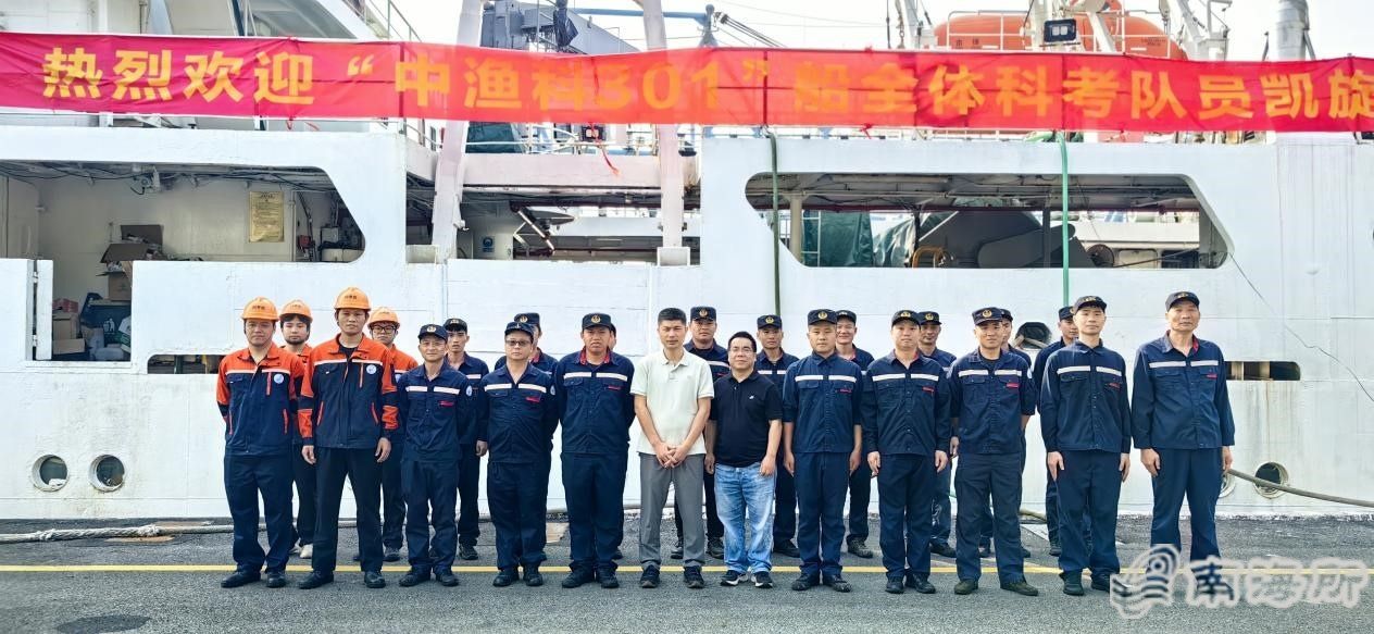 近日,中国水产科学研究院南海水产研究所“中渔科301”号渔业科学调查船顺利完成“中国与南海周边国家现代渔业合作”项?/span>2024年第二航次调查任务并返回广州,标志着南海所2024年度既定航次调查任务全部圆满完成。南海所党委委员、渔业资源研究室主任陈作志和调查船基地主任冯震华到新洲码头迎接全体科考队员凯旋?/span>