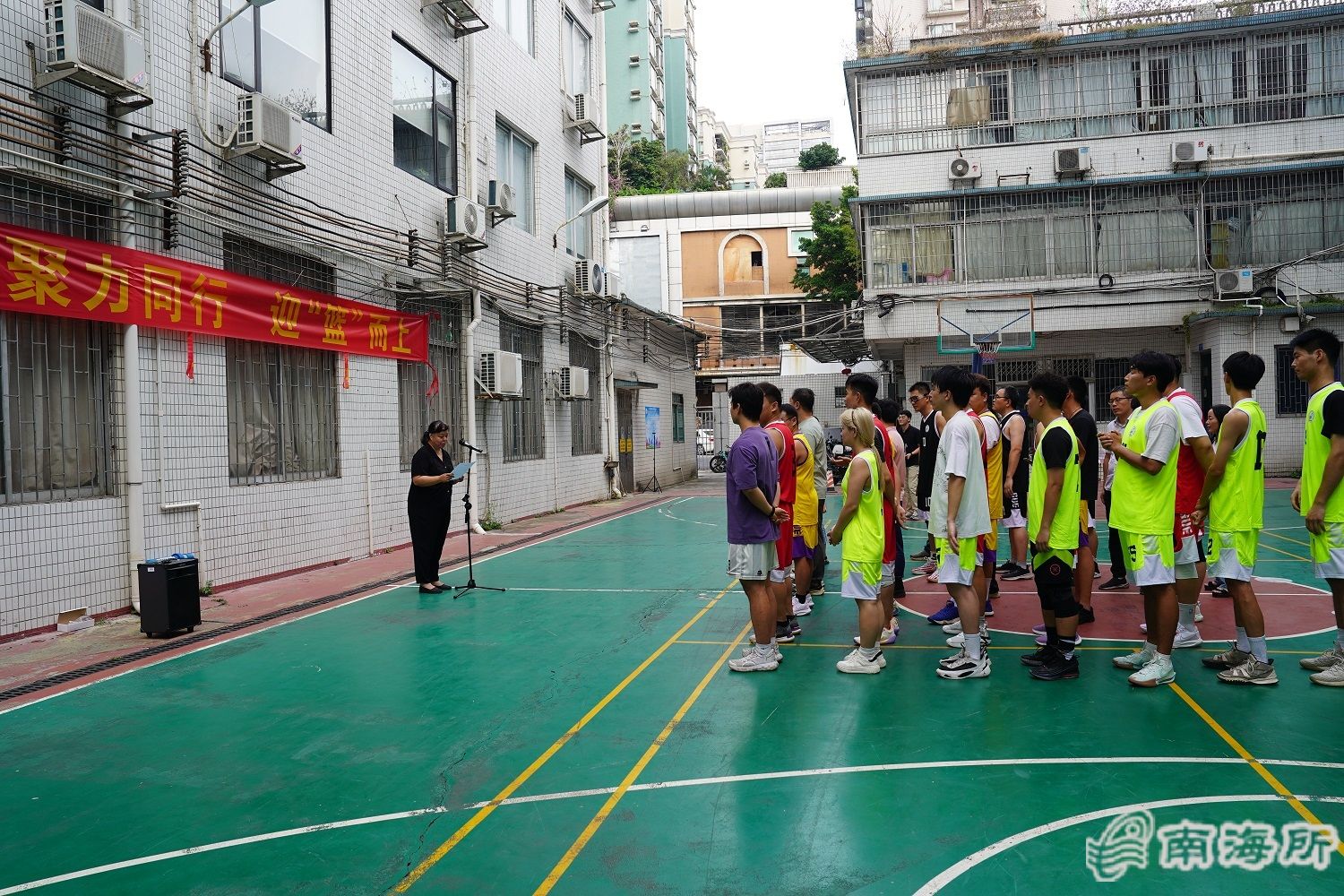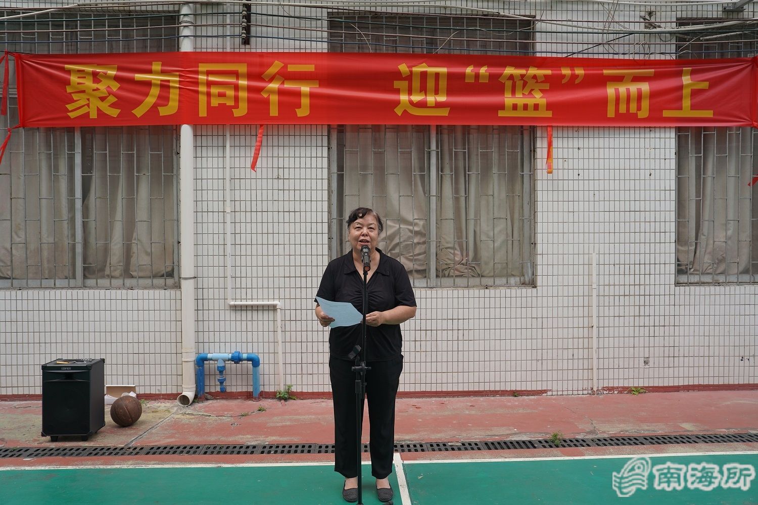副所长、工会主席吴洽儿宣布篮球比赛开始并为比赛开球?/p>