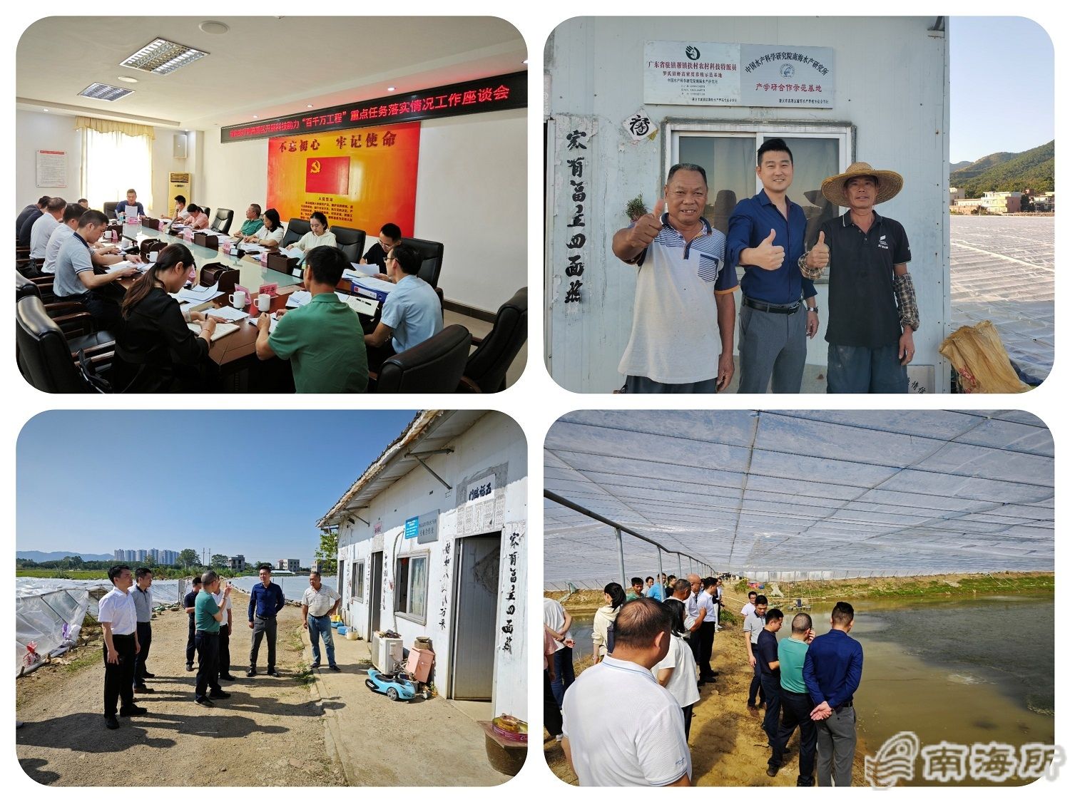 近日,为深入贯彻落实省委、省政府关于实施“百县千镇万村高质量发展工程”、促进乡村振兴、城乡区域协调发展的相关决策部署,广东省科技厅二级巡视员谢安玄、农村处四级调研员叶毓峰,肇庆市科技局局长罗盛斌、副局长李文杰及高要区、金渡镇相关负责领导组成的调研组一行,到肇庆高要区罗氏沼虾高密度养殖示范基地和产学研合作示范基地进行重点任务落实推进调研。该示范基地由中国水产科学研究院南海水产研究所联合肇庆高要区肇虾水产养殖专业合作社共同建设。驻金渡镇的南海所农村科技特派员团队负责人刘广鑫作现场汇报?/p>