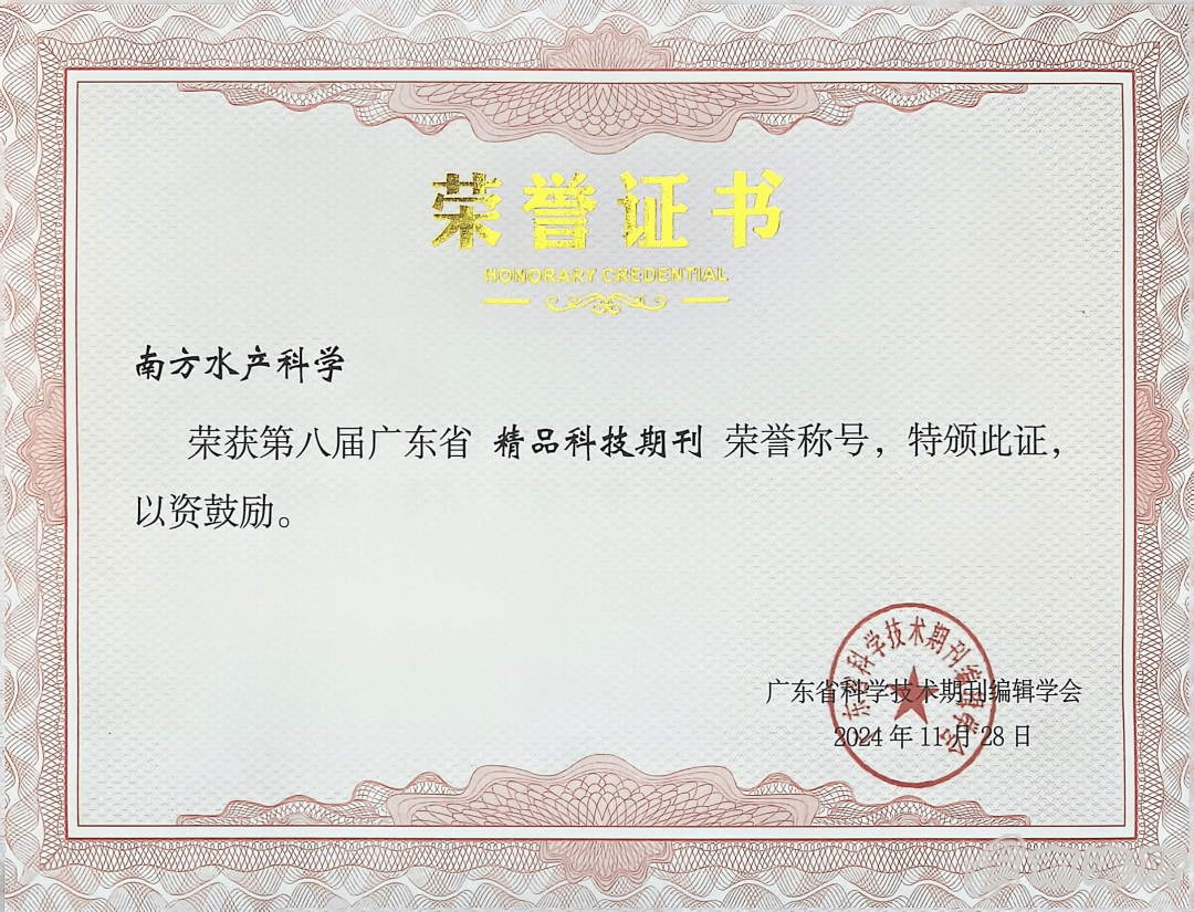 这一荣誉不仅是对《南方水产科学》编辑团队工作的肯定,也是对其在水产科学领域内学术贡献的认可。未来,《南方水产科学》编辑团队将继续秉承创新、专业、严谨的精神,不断追求卓越,为广东省乃至全国的水产科学研究和科技期刊事业的发展贡献更多的智慧和力量?/p>