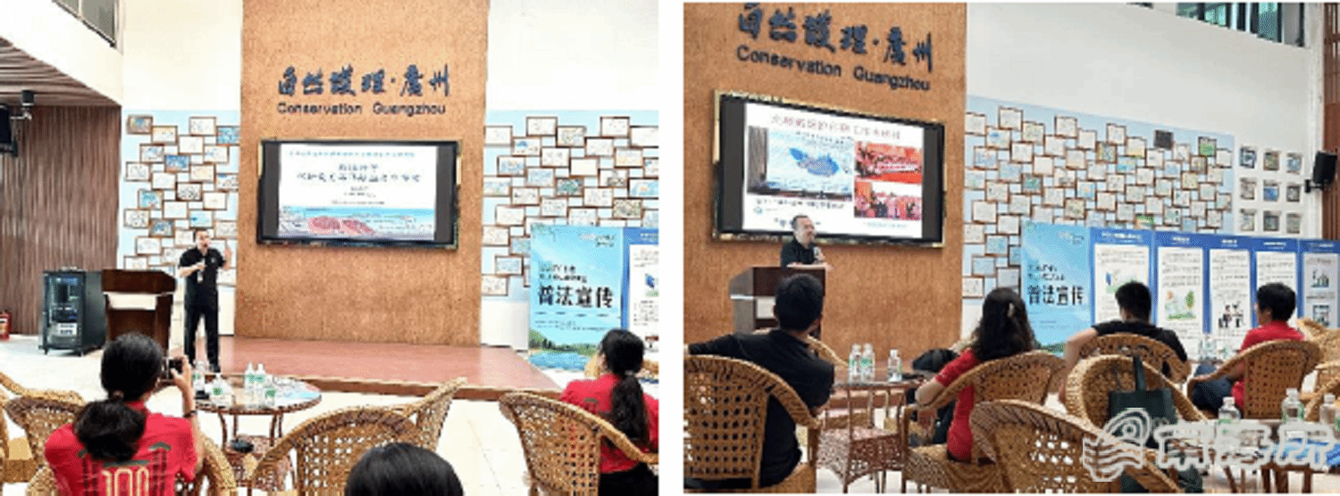 2024?月,在广州市水生野生动物保护基地,南海所中华鲎保护科研团队以“撒播种子,保护最美海洋献血者中华鲎”为题,为中山大学生命科学学院的本科生开展主题分享,聚焦中华鲎保护知识宣传与教育,在向广大同学展示海洋生物多样性和独特性的同时,帮助同学们认识并了解这些生活在地球上的奇妙生物,号召同学们将所学知识转化为实际行动,共同为中华鲎保护事业贡献自己的力量?/p>