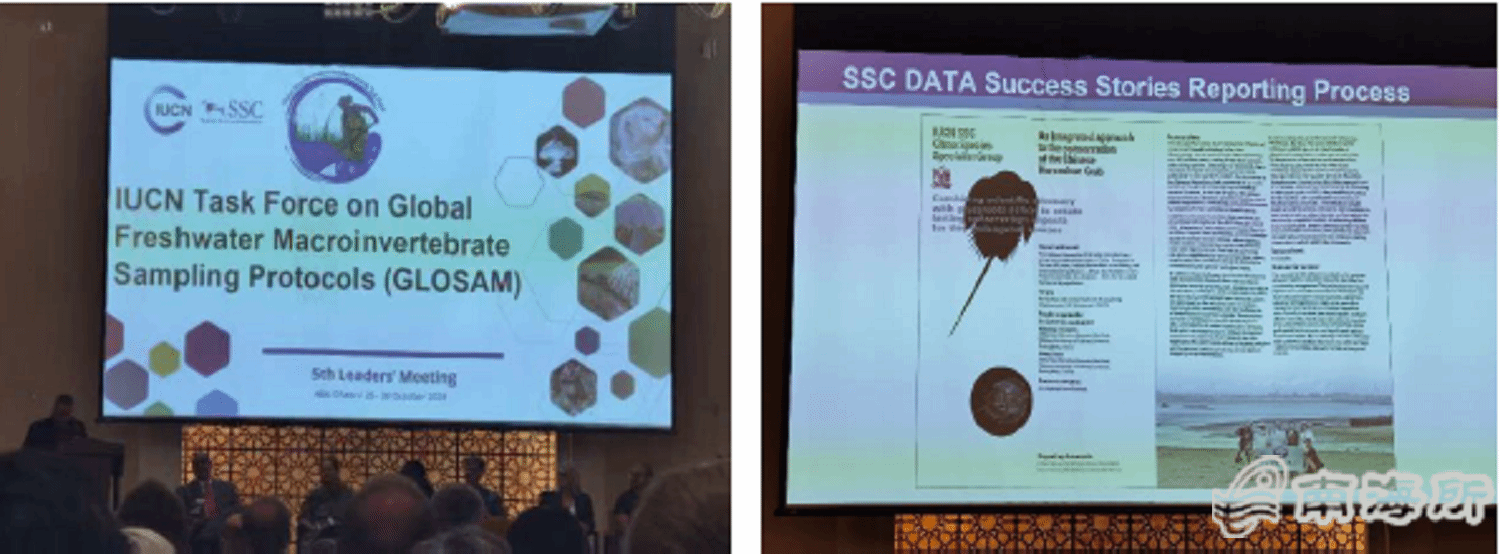 2024?0月,在阿联酋阿布达比召开的世界自然保护联盟物种生存委员会(IUCN SSC)领导者会议上,南海所中华鲎科研团队的事迹被评选为“领导者成功案例”,由中国物种专家组(ChSSG)执委会作为“濒危动物保护行动成功故事”,以“中国物种保护的经验与策略”为主题进行珍稀濒危物种保护的典型案例分享,为全球生物多样性保护积极贡献中国智慧和中国力量?/p>