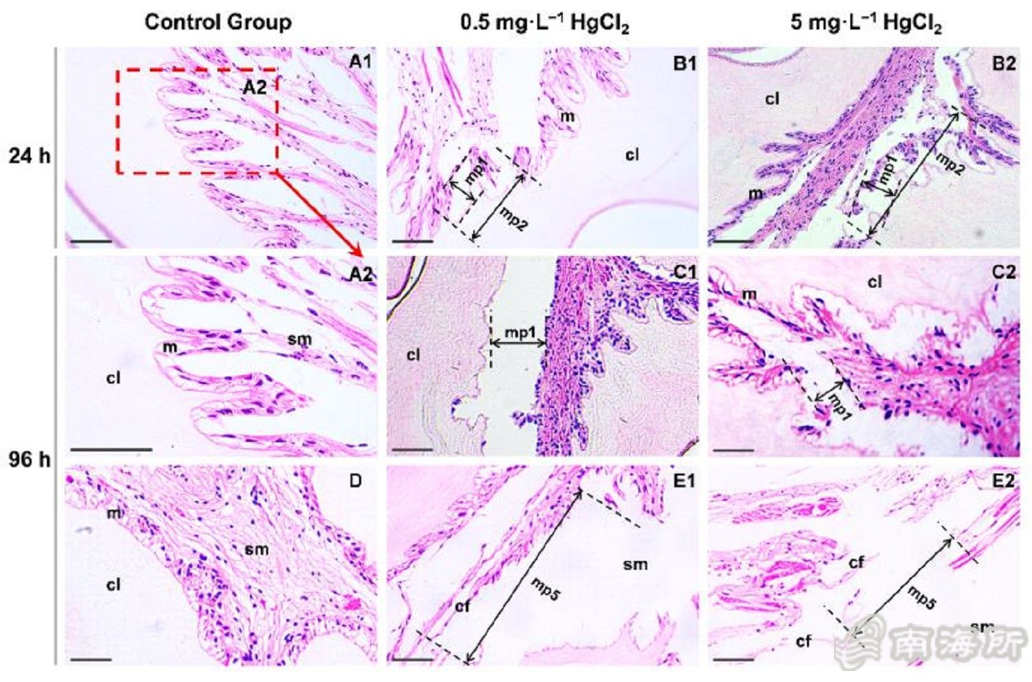 汞暴露下圆尾鲎消化道组织学改变和结构特征