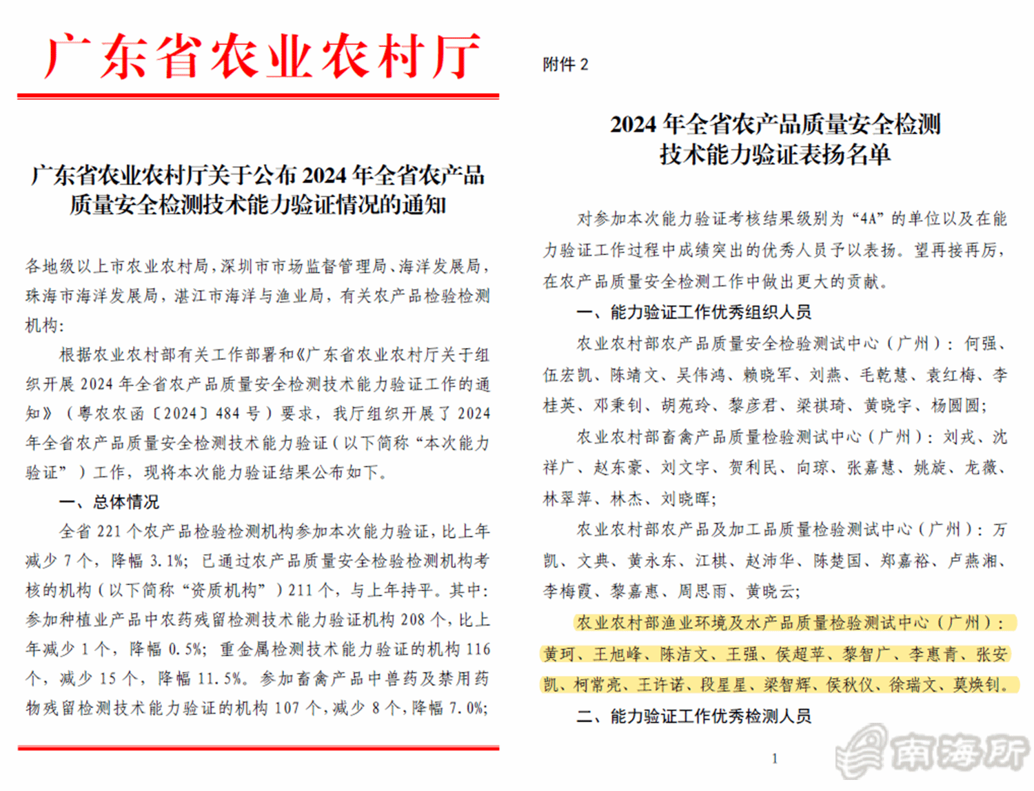 除通过此次部级检测技术能力验证外,部质检中心全年还积极参加了由农业农村部渔业渔政管理局、国家市场监督管理总局、中国绿色食品发展中心和广东省农业农村厅组织的各类能力验证考核,合?1批次?4个参数,所有参数均一次性通过考核,表明部质检中心的检测技术水平稳定,质量控制有效,检测数据准确可靠?/p>