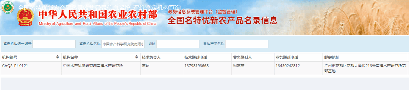近日,经农业农村部农产品质量安全中心正式批复,确认中国水产科学研究院南海水产研究所为“全国名特优新农产品营养品质评价鉴定机构”(全国统一编号:CAQS-PJ-0121),承担名特优新农产品营养评价分析和鉴定工作。评价鉴定机构的实施主体为依托南海所建设的农业农村部渔业环境及水产品质量检验测试中心(广州)(简称“部质检中心”)?span style="text-indent: 2em;">