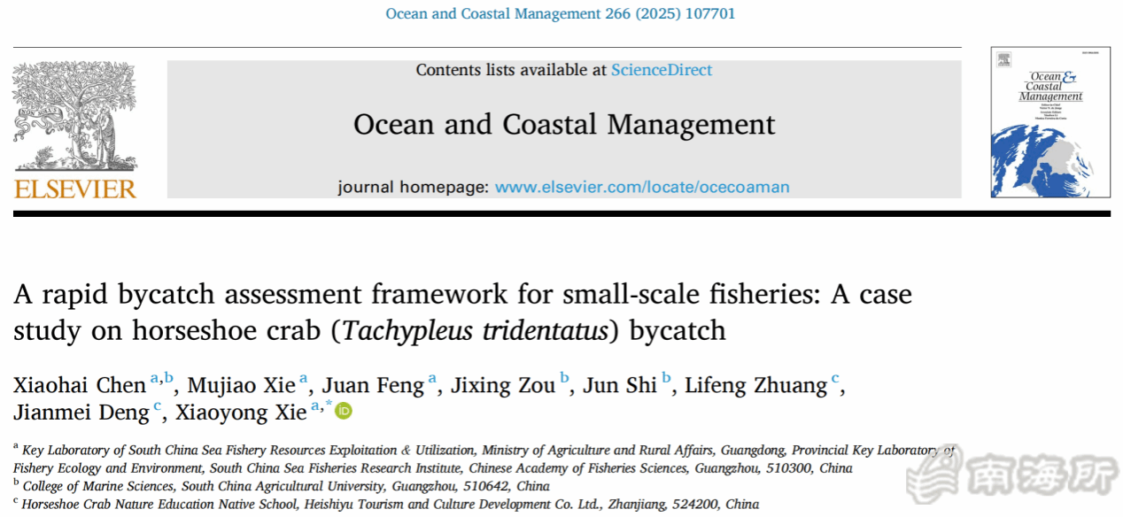 南海所在建立用于中华鲎保护的副渔获物快速评估方面研究取得新进展