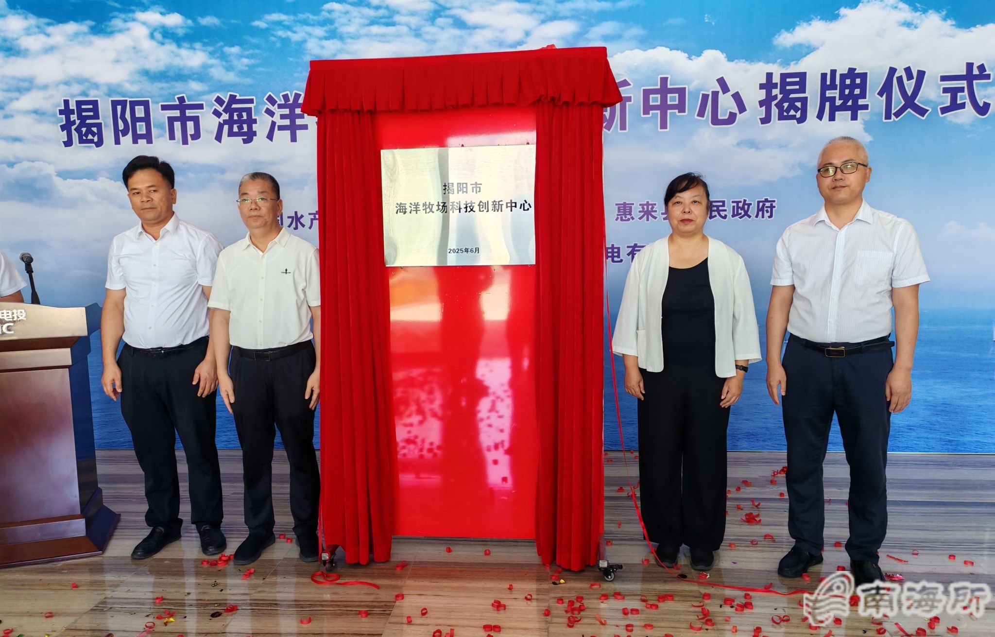 6?4日,由中国水产科学研究院南海水产研究所与惠来县人民政府、揭阳市农业农村局、揭阳前詹风电有限公司共建的“揭阳市海洋牧场科技创新中心”揭牌仪式在揭阳前詹风电有限公司成功举行。南海所党委书记程洁参加揭牌仪式并致辞,与揭阳市委常委、常务副市长蔡淡群,惠来县委常委吴谦慎、揭阳前詹风电有限公司党支部书记刘庆辉共同为创新中心揭牌。揭阳市政府副秘书长杨广新、市农业农村局副局长郭伟豪、揭阳前詹风电有限公司总经理穆兆辉以及南海所有关专家参加揭牌仪式?/p>